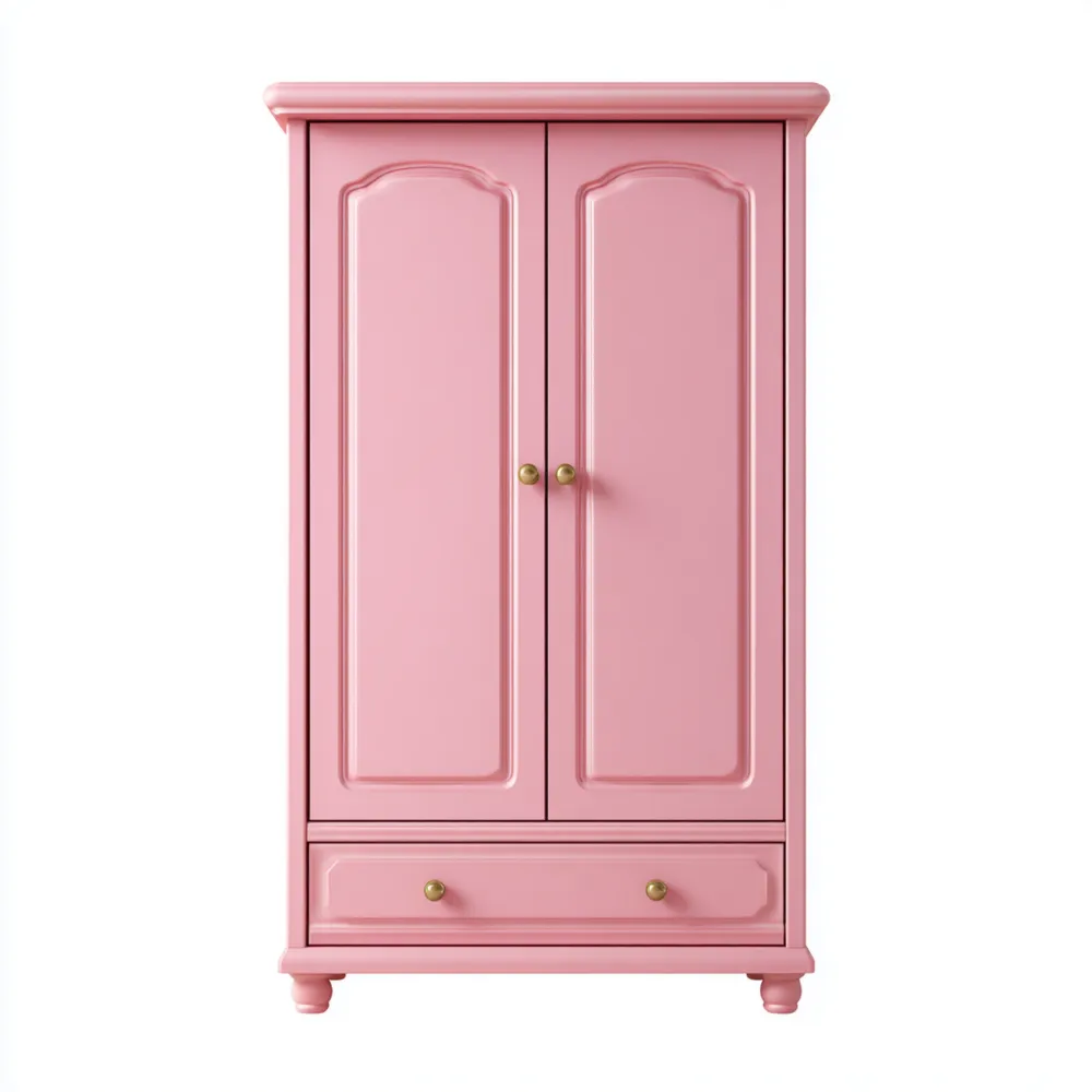 Der Garderobenschrank aus mitteldichter Faserplatte (MDF) ist in einem Rosaton lackiert. Die Konstruktion gewährleistet Langlebigkeit und Stabilität.